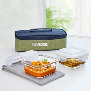 1. Borosil Ace Series Lunchbox – Glass, with Bag (320ml x 2)